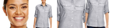 3 oz/yd2 / 100 gsm, 92% nylon, 8% spandex; Yarn dye woven with moisture wicking performance; Adjustable cuffs with button placket; Double layer, bias cut back yoke; Dyed-to-match pearlized buttons; Hidden button-down collar; Luxury, comfort and performance in one;