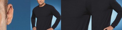 preshrunk 50% polyester/25% cotton/25% rayon jersey • 4.3-oz. • 32 singles for extreme softness • 1x1 tri-blend baby rib-knit cuffs • satin label • Sizes: S-2XL