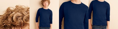 preshrunk 100% cotton jersey (sport grey body 90% cotton/10% polyester • heather/black and heather/navy bodies 50% cotton/50% polyester) • 6.1-oz. • set-on 1" rib-knit collar and sleeve cuffs • shorter tapered sleeves • double-needle collar and bottom hem • quarter-turned to eliminate center crease • Sizes: S-2XL