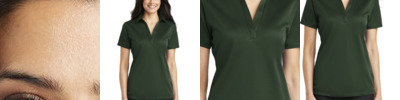 Lightweight and breathable, this moisture-wicking shirt has a pleasing drape, subtle jacquard texture and an open placket for feminine style.