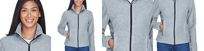 8.5 oz./yd2/280 gsm, 100% polyester fleece; Pill-resistant; Feminine fit; Elastic cuffs; Nylon-reinforced zippered pockets;