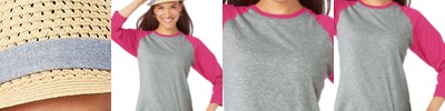 - Capped sleeves with a solid color rib neck trim