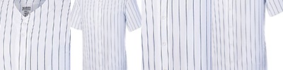 100% polyester smooth pinstripe knit ; Wicks moisture away from the body ; Pad print label ; Set-in sleeves ; Full-button jersey ; Buttons spaced for easy embellishment ; Double-needle hemmed sleeves and fishtail bottom.;