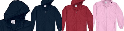 2.8 oz., 100% polyester micro poplin; Wind- and water-resistant; Scuba collar hood; Adjustable bungie drawcord at hood and bottom hem; Exposed dyed-to-match nylon cord zipper; Lower front on-seam pockets; Set-in sleeves; Encased elastic cuffs; Champion "C" patch on left sleeve; Woven neck label; “A” list status from CDP (Carbon Disclosure Project); Energy Star Partner of the Year (12 consecutive years); Every piece of Champion apparel purchased from our company qualifies for Hanes4Education;