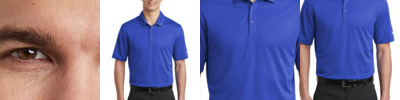 A contrast hex textured interior gives these styles a subtle exterior texture while Dri-FIT moisture management technology helps keep things from heating up. Design details include a self-fabric collar, three-button placket with dyed-to-match buttons and open hem sleeves. The contrast heat transfer Swoosh design trademark is on the left sleeve. Made of 5-ounce, 100% polyester Dri-FIT fabric. **