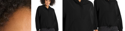 3 oz., water-resistant 100% nylon shell; 1.8 oz., 100% polyester lining; 17.2 oz. 2x1 100% polyester rib; Raglan sleeve for maximum mobility; Dyed-to-match buttons; 2 striped rib on neck, cuff, and waist;