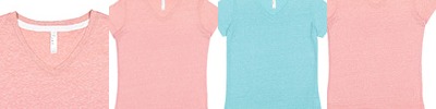 4.5 oz., 65% polyester, 35% combed ringspun cotton Harborside Mélange jersey; Topstitched ribbed collar; Contrast white cotton twill back neck tape; Flatlock stitched side seams; Double-needle sleeves and bottom hem; EasyTear™ label;