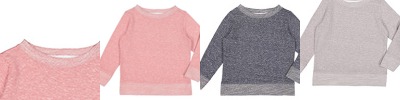 6.2 oz., 55% polyester, 45% combed ringspun cotton Harborside Mélange French Ter; Cotton twill back neck tape; Flatlock stitched self-fabric textured loop collar, cuffs and bottom band; Self-fabric textured loop elbow patches; Flatlock stitched side seams; CPSIA compliant tracking label in garment;