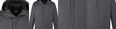 8.5 oz., 59% cotton/39% polyester/2% spandex DRI FLEX™ canvas with a water-resistant DWR finish; Brushed tricot inside upper body panel; Quilted nylon inside lower body panel with 3 oz. polyfill; Right-chest zippered pocket and secure hand pockets; Heavy-duty 2-way YKK metal zipper; Three-piece hood with scuba collar and inside, adjustable-toggle drawcord; Flex Action™ back, underarm gussets, and articulated elbows; Drop tail hem, storm cuffs; Reinforced stitching on high-stress seams; Relaxed fit;