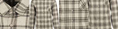 Red/Heather Black & Steel/White: 60% cotton, 40% polyester; Blue/Ecru & Black/Ecru: 80% cotton, 20% polyester; Single chest pocket with biased pattern ;