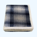 100% polyester; super-soft plaid polar fleece reversible faux lambswool throw; includes vinyl zippered bag; 50" x 60";