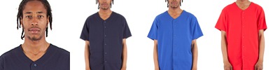 7.5 oz., 100% USA cotton, 16 singles; Heavy duty knitting; Heather Grey is 90% USA cotton/10% polyester; Scalloped bottom hem; Button-down front closure; 1" double-needle stitched sleeve and bottome hems; Classic fit; Side-seamed; Replacement button on inner side-seam; Sufficient spacing between buttons for optimal printing;