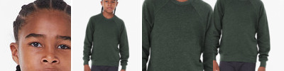KVPrint offers the perfect blend of comfort, durability, and sustainability with our 7 oz. BELLA+CANVAS youth fleece. Made with 52% Airlume combed and ring-spun cotton and 48% polyester fleece, this pre-shrunk, retail-fit sweatshirt features raglan sleeves, a 1x1 ribbed cuff and waistband, and side-seaming for a polished look. Designed for customization, it includes a tear-away label and comes in youth sizing. Produced with sustainable practices, including Blue Sign-certified dyes and eco-friendly facilities in Los Angeles, this fleece combines quality and environmental responsibility. Perfect for kids' everyday wear or custom branding.