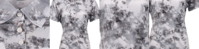 - Iridescent heat transfer O on front left hem