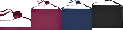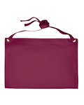 8 oz., 70% cotton, 30% polyester twill; 14" wide centre pocket with reverse contrast trim; combined pen pocket; metal eyelets secure 39" contrast fabric ties; 20" L x 28" W; Oeko-Tex® Standard 100 certified; WRAP certified;