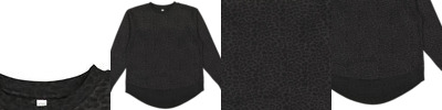 - Raw edge seam at sleeve cuffs and bottom band