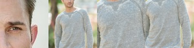 - 2x1 ribbed collar, V-notch, cuffs and waistband