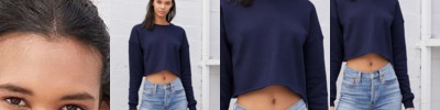 - Ribbed neckband, sleeve cuffs, and bottom band