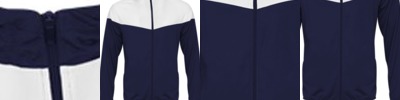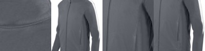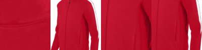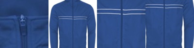 - Self-fabric collar with full length locking zipper Two front zipper pockets with headset opening