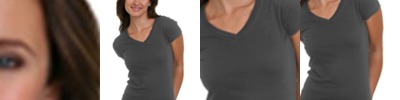 - Front cover stitched 1x1 baby rib-knit set-in V-neck collar