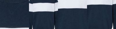 - 1x1 ribbed yarn-dyed striped cuffs, waist and inside collar