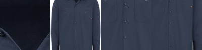 - One-piece, topstitched, lay-flat collar
