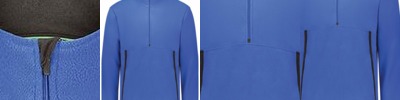 - Quarter-zip with storm flap and zipper garage