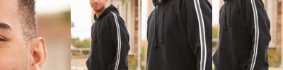 - 1" wide set-on striped woven taping along sleeves