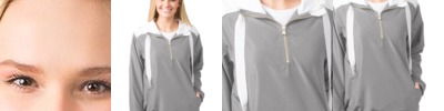 Contrasting yoke and top sleeve inserts add pizzazz to a moisture-management pullover.