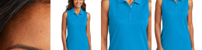 KVPrint’s Women's Dry Zone UV Micro-Mesh Sleeveless Polo combines performance and style, perfect for warm-weather activities. Made from 4.6-ounce, 100% polyester double-knit pique, it features moisture-wicking, snag-resistant fabric with a UPF rating of 30 to keep you protected under the sun. The flat-knit collar, 5-button placket, and pearlized, dyed-to-match buttons offer a polished look, while the bound armholes and straight hem with side vents ensure comfort and freedom of movement. Finished with a tag-free label for added comfort, this polo is a versatile addition to any active wardrobe.