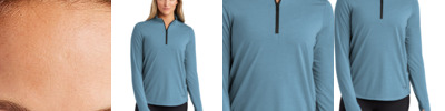 Made from at least 75% recycled polyester fabric, Nike has engineered a cover-up that looks and feels like your favorite sweater-but is ready to perform with Dri-FIT technology. Design details include a cadet collar, reverse coil zipper with faux leather zipper pull, rib knit cuffs and rib knit hem. A contrast Swoosh logo is embroidered on left sleeve and center back neck. Made of 8.3-ounce polyester Dri-FIT fabric.