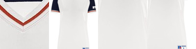 - "R RUSSELL" on back left hip