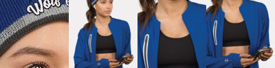 - Wide ribbed collar, cuffs and bottom band