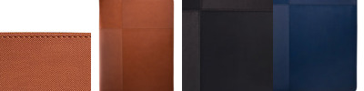 - Glazed bonded calfskin Leather portfolio accented with a faux suede spine