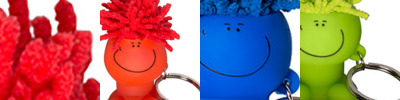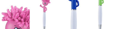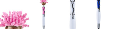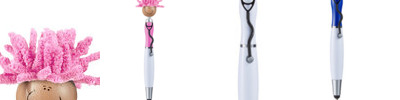 - Click-action ballpoint pen with smiley face, awareness ribbon shaped clip and mop-top hair