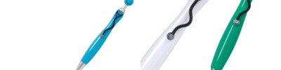 - Click-action ballpoint pen with smiling face wearing flexible stethoscope clip
