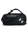 100% polyester; UA Storm technology delivers an element-battling, highly water-resistant finish; Tough, abrasion-resistant bottom and side panels; Two large, front zippered pockets; Removable, padded, HeatGear® shoulder strap for total comfort; Padded top grab handle; Large vented pocket for laundry, shoes and internal slip pockets; Embroidered UA label on side; Heat-seal UA logo on front; 24.6" x 12.1" x 11.4";