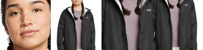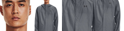 UA Storm technology repels water without sacrificing breathability; 100% waterproof & breathable 2.5-layer bonded fabric with fully taped seams; 3.39 oz., 100% nylon; Adjustable bungee cord on back of hood; Secure, zip hand pockets ; Adjustable Drawcord on bottom hem for a secure, custom fit; Fuller cut for complete comfort;