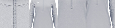 - UA woven label centered on left sleeve hem and UA heat seal center back neck
