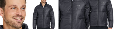 2.54 oz., 100% polyester; UA Storm Technology repels water without sacrificing breathability ; All-over 120g synthetic insulation for warmth without any excess bulk ; Lightweight woven fabric delivers superior comfort and durability; Secure, zip hand pockets ; Adjustable bungee at bottom hem; Elastic sleeve cuffs; Loose fuller cut for complete comfort;