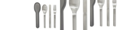- a nesting knife, spoon and fork set that feels great to hold and conveniently nests into a protective case for easy carrying