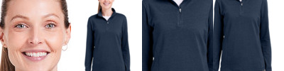 51% organic cotton, 41% bamboo viscose, 8% lycra® spandex; Moisture-wicking, UPF 50+, anti-odor; Made with organic cotton and renewable bio-degradable bamboo fibers ; self collar, tagless at inner neck; 8" lock down zipper; Drop logo mark at upper back under neck seam; Front and back coverstitch princess seaming; Sewn in care and content label at lower left; Thumbholes; Semi-fitted feminine silhouette; Fabric and garments are manufactured in a facility 100% powered by solar and wind energy. Fabric and garments are manufactured in a GreenCo certified facility. 450g of CO2 are saved with the production of each garment ;