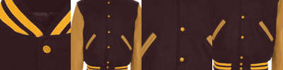 4.8 ounce 50% polyester/50% cotton jersey knit * Contrast color V-neck collar * Set-in sleeves with contrast color sleeve stripes