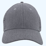 * Sublimated heathered, lightweight polyester blend * Perforated side panels * Breathable * Wicks moisture * Low-profile, structured crown * Black undervisor * Front panel eyelets * Pro-stitched finish * Hook-and-loop adjustable * A-Flex(r) stretch sweatband