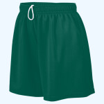 100% polyester wicking mesh * Wicks moisture * Ladies' fit * Covered elastic waistband * 5-inch inseam * Girls inseam graded