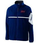 * 90% polyester/10% spandex, 4-way stretch woven fabric * Woven label * Front zipper with reflective zipper pull and matte tips * Contrast color sleeve pocket with silver media port and reflective metallic silicone welded zipper * Raglan sleeves for maximum mobility * Locking welt front pockets * Dual inside pockets * Spandex bound cuff * Open bottom with adjustable elastic hidden drawcord * Water-repellent