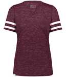 * Eco-Revive(r) product featuring 95% recycled polyester/5% cotton * Wicks moisture * Ladies' fit * Tag-free label * V-neck collar * Set-in sleeves
