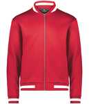 * 100% polyester double-knit * Ladies' fit * Woven label * Front zipper * Set-in sleeves * Front pockets * Dual inside pockets * Striped rib-knit collar, cuffs and bottom band