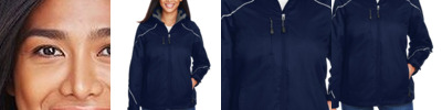 4.4 oz./yd²/150 gsm (US), 7.3 oz./L yd (CA), 100% polyester twill Shell lining is 100% polyester taffeta with embossed print Linner jacket is 100% polyester jersey Contrast stitching along flat reflective piping Inside storm placket with brushed tricot chin guard and collar Inside placket with brushed tricot-lined collar Zip-off hood with back adjustable tab Thermal retention shock cord at hood and drop back hem Flat reflective piping at front, back and sleeves Adjustable cuffs with tabs Centre front and lower pockets with reverse coil zippers Chest pocket with invisible zipper Brushed tricot-lined pockets Audio port access through inside chest pocket