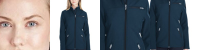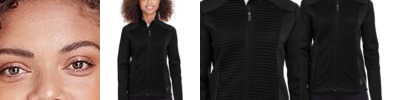 - Reverse coil center front zipper with dyed-to-match rubberized branded zipper pull
